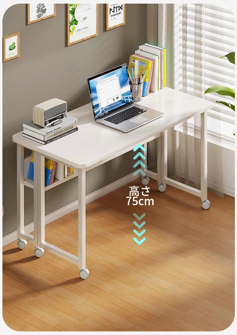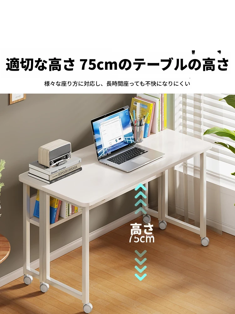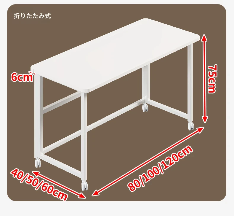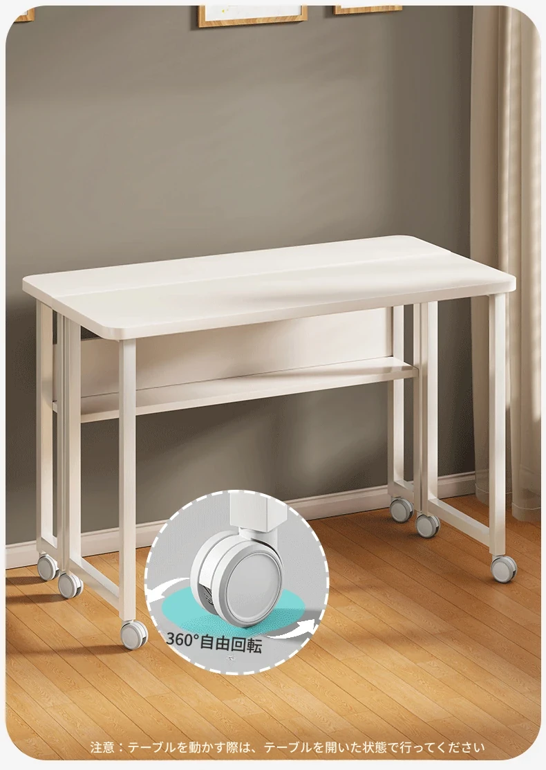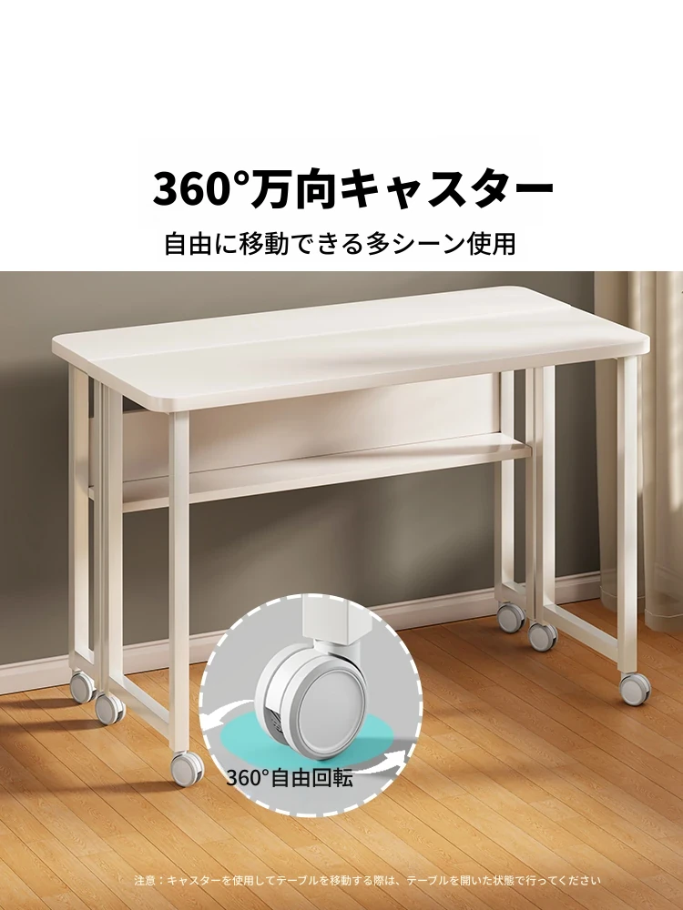 折りたたみ式移動可能な学習デスク - 車輪付きで簡単に移動できる!家庭用のシンプルなオフィスデスクやベッドサイドテーブル、小型のダイニングテーブルとしても最適です。勉強や仕事を快適にサポートします!