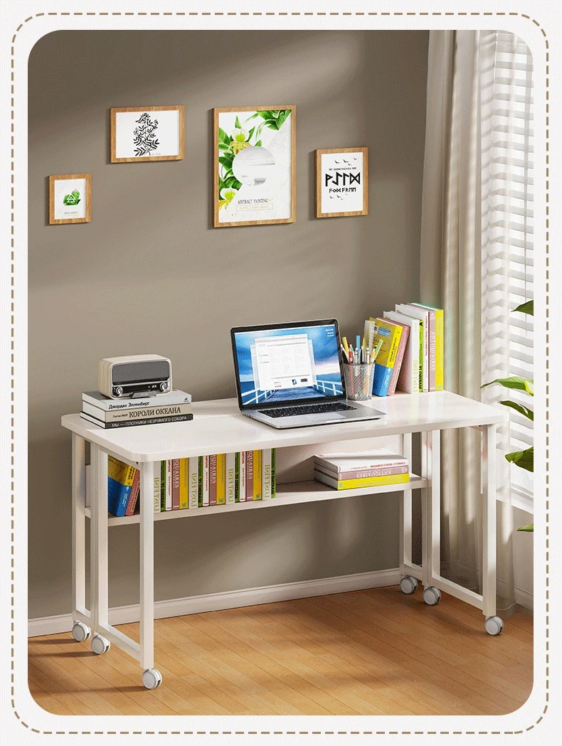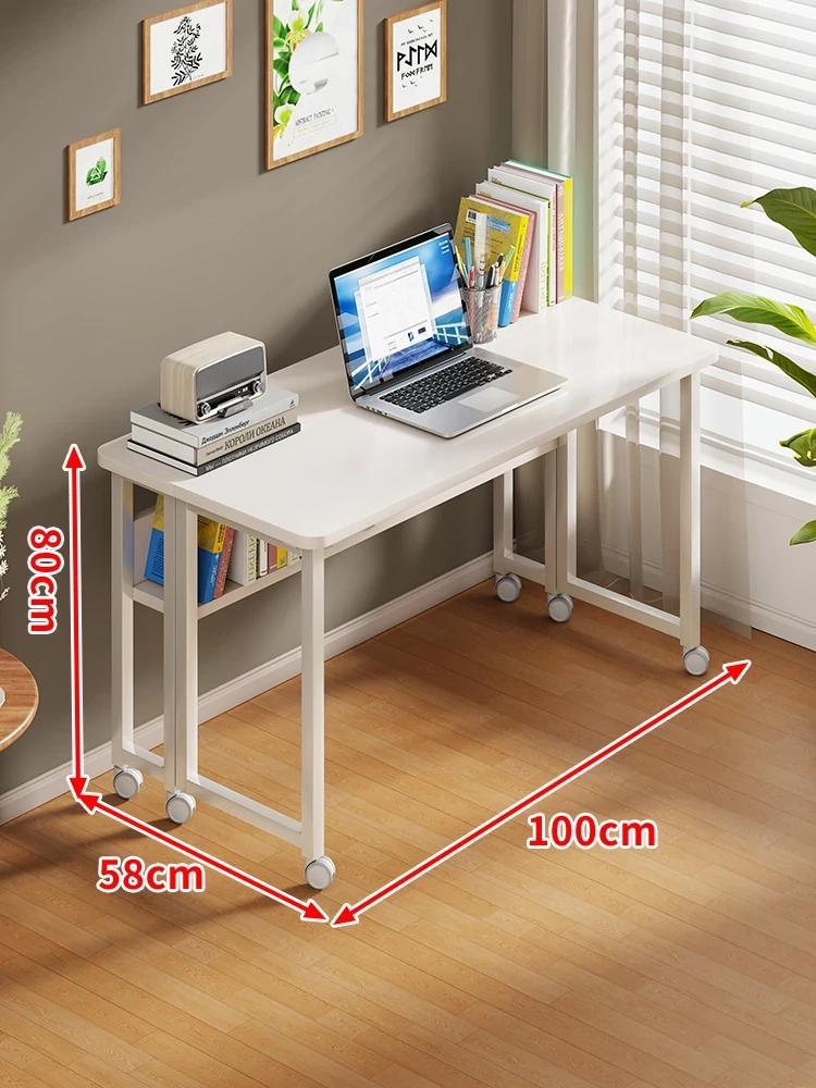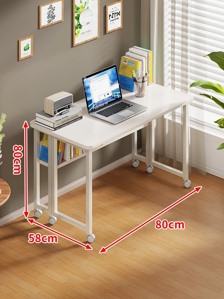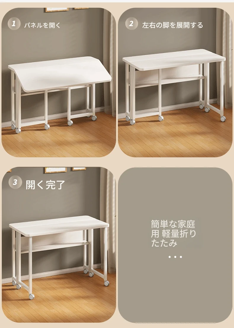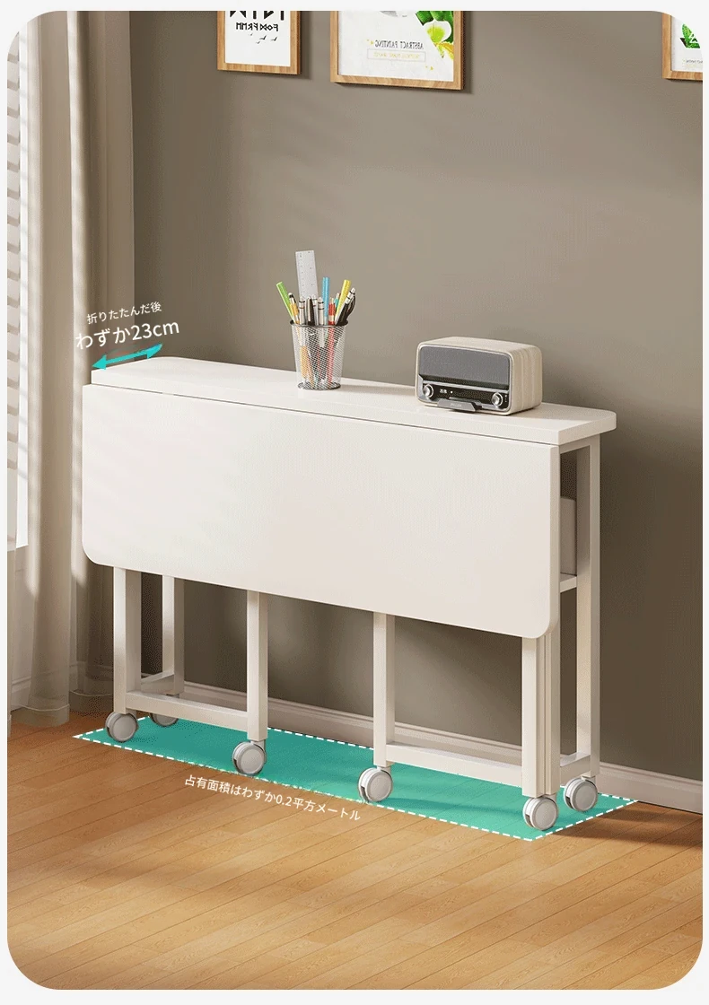 折りたたみ式移動可能な学習デスク - 車輪付きで簡単に移動できる!家庭用のシンプルなオフィスデスクやベッドサイドテーブル、小型のダイニングテーブルとしても最適です。勉強や仕事を快適にサポートします!