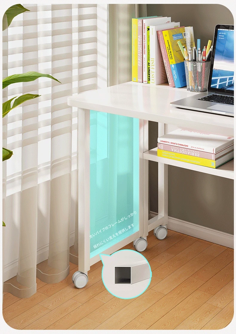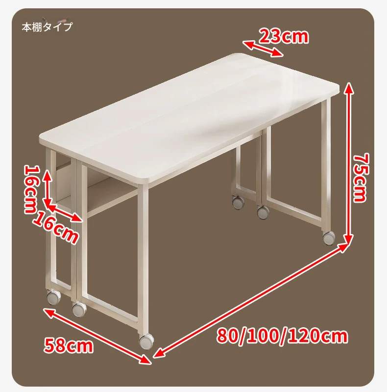 ホワイトデスク本棚タイプキャスター付き100*58