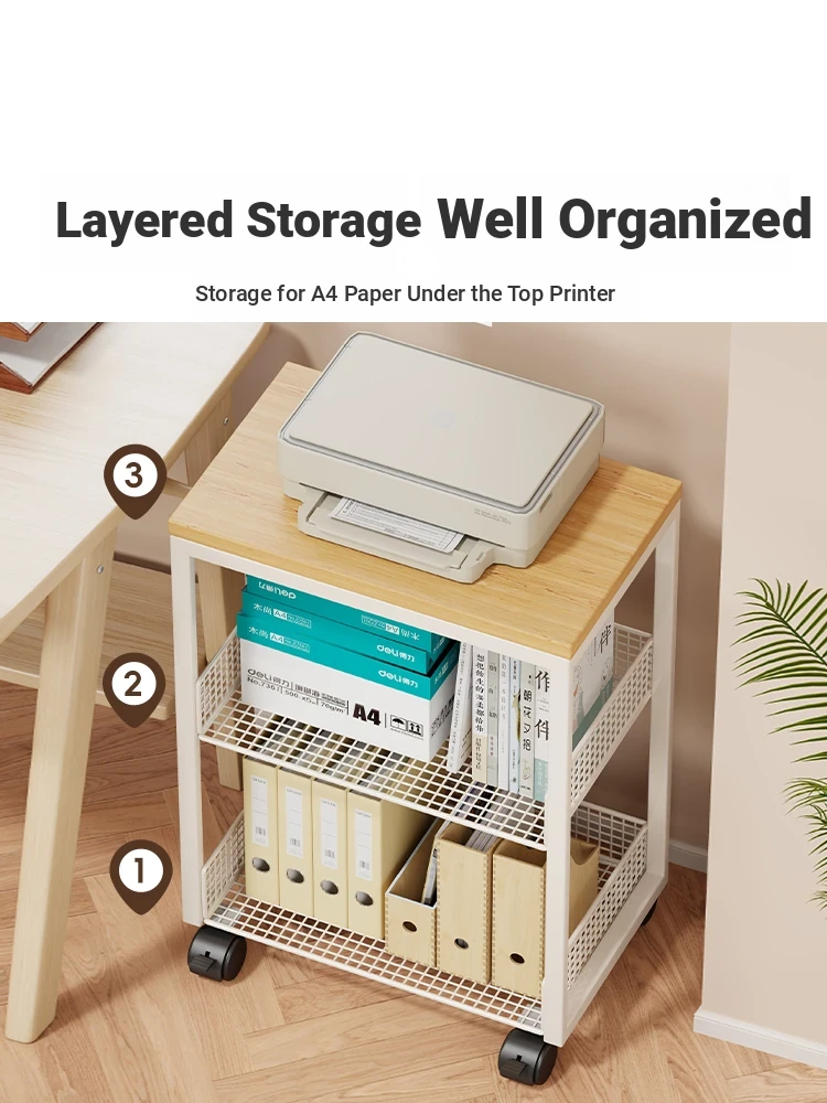 Mobile Printer Stand and Storage Cart with Wheels - Perfect for Office Desks, Compact Design for Easy Placement, Ideal Bookshelf or Side Cabinet for Organized Workspaces.