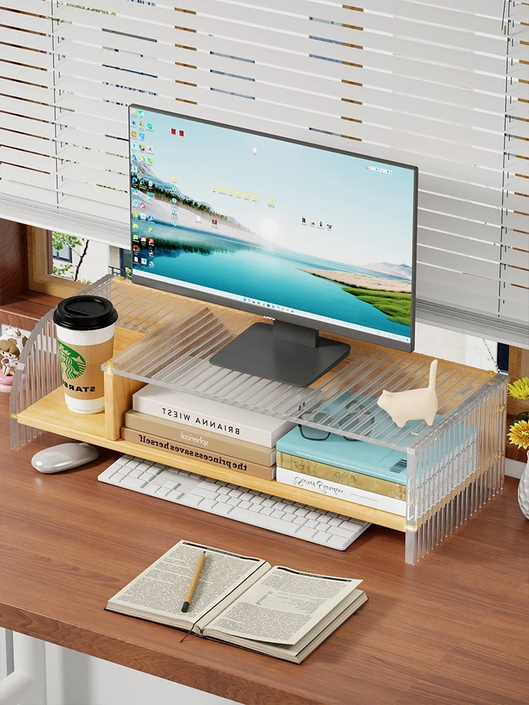 Elevated Computer Monitor Stand - Acrylic Desktop Organizer for Office Storage, Stylish and Functional Monitor Riser to Enhance Workspace Efficiency