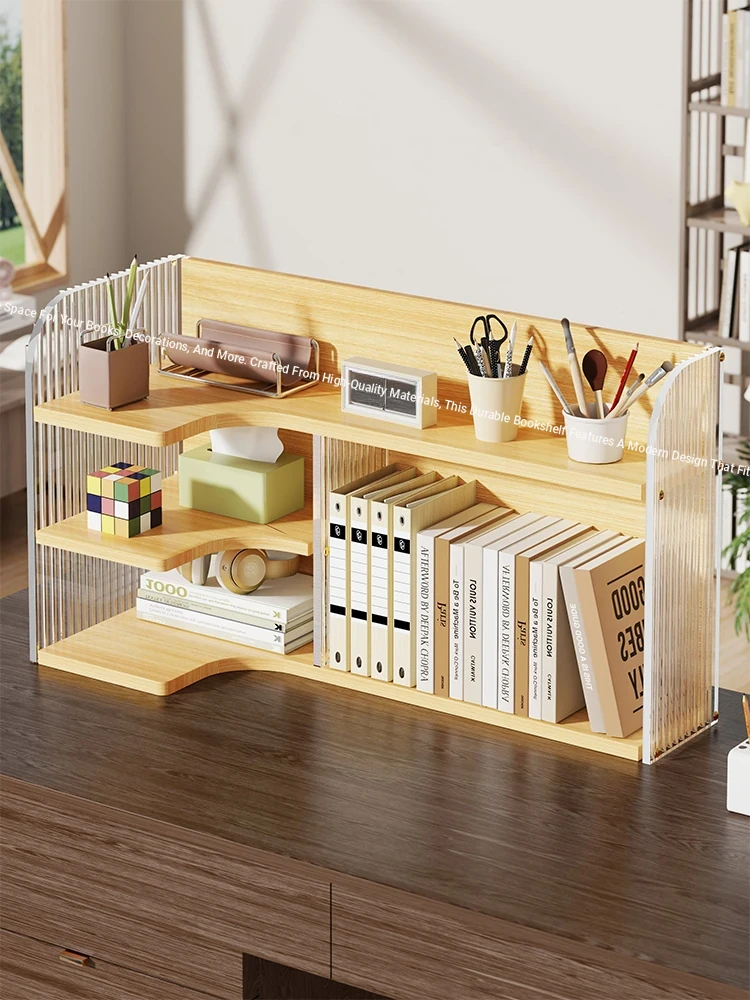 Multi-Tier Desktop Bookshelf – Stylish Desk Organizer for Office, Dorm, and Study. Perfect for Maximizing Space and Keeping Your Desk Tidy! Ideal for Books, Stationery, and More.