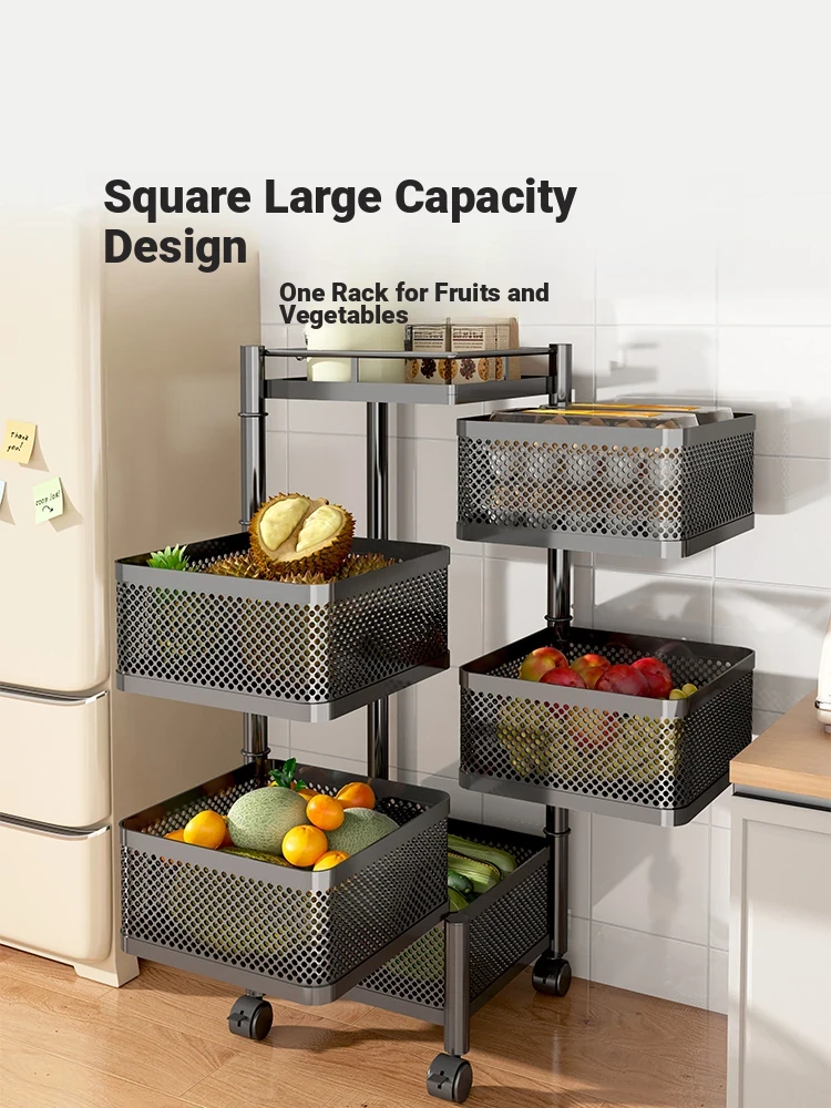 Multifunctional Kitchen Rolling Storage Rack - Floor Standing 3-Tier Snack Cart with Fruit and Vegetable Baskets for Home Organization