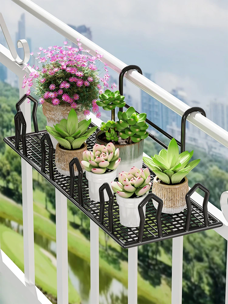 アイアン製フラワースタンド バルコニーポットラック 吊り下げ式バルコニー花鉢ハンガー 窓辺収納ラックでおしゃれな空間を演出!お庭やバルコニーにぴったりなデザインで、植物を美しく飾ります。