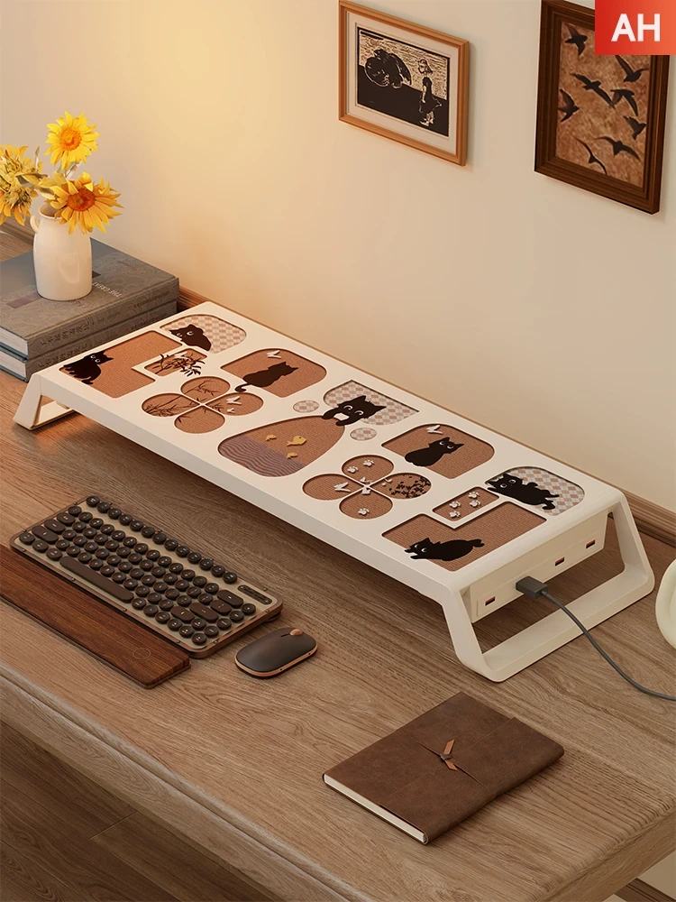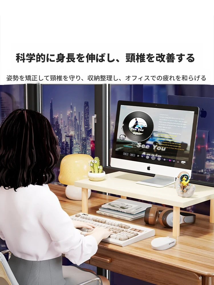 デスクトップモニター昇降スタンド|快適な作業環境を実現する多層収納ラック|パソコン画面をすっきりと引き上げ、デスク周りを整理整頓!