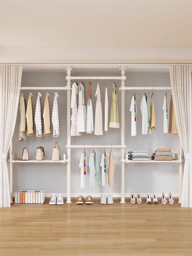 丈夫なスタンド式ハンガーラック - 衣類や帽子をしっかり支える!組み立て簡単、衣装部屋やクローゼットに最適な収納スペースを提供します。あなたの部屋をスッキリ整理整頓!