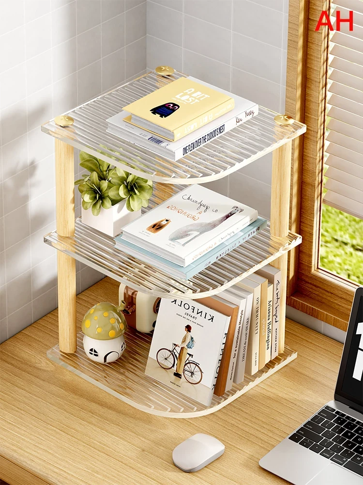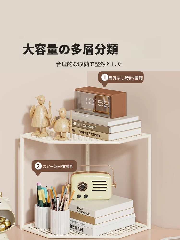 角にぴったり!多層型書棚兼用デスク - 寝室やオフィスに最適な三角形収納ラック。化粧品や小物を美しく整理整頓。省スペースでスタイリッシュな空間を演出します!