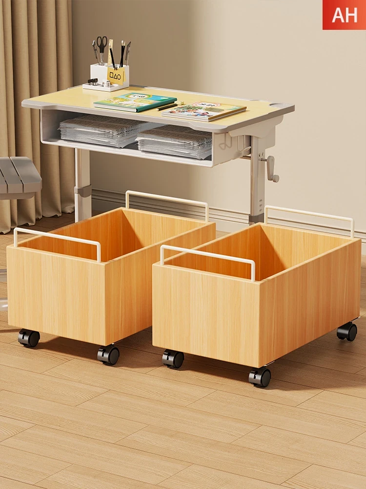 移動可能な天然木製本棚!子供や中学生に最適な収納カート。教科書や文房具をすっきり整理、デスク下にぴったり収まる便利な収納アイテムです。